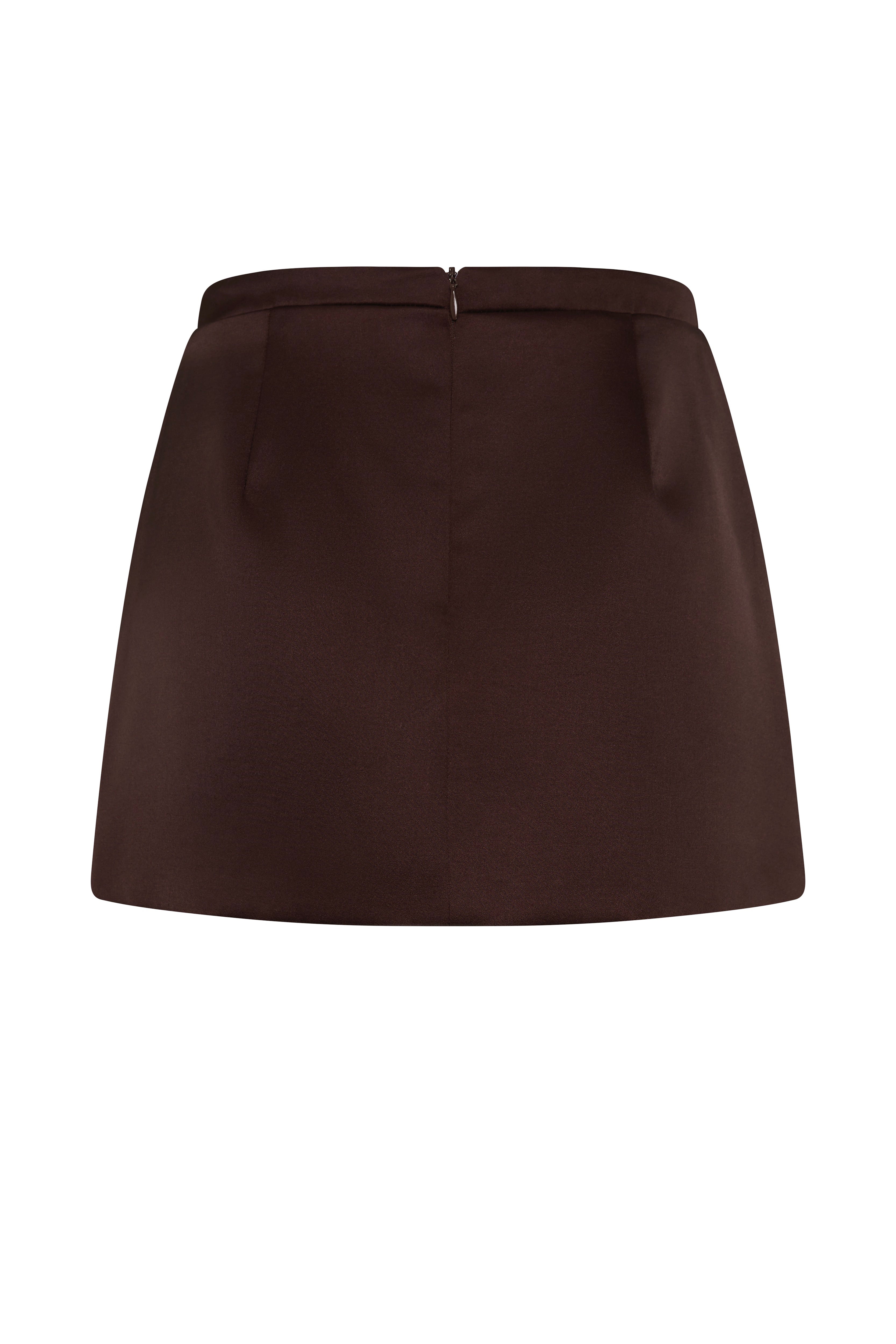 Inspired by iconic mini skirts before it, The Carla mini features both a perfect 60's inspired hitched up hemline and chic 90's minimalism with its structured satin finish.